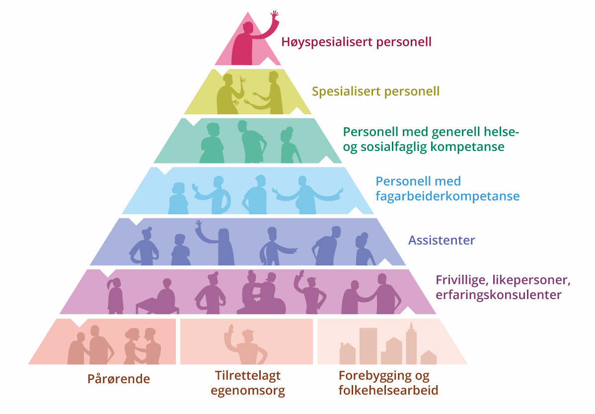 Helsepersonellkommisjonen peker på ulike tiltak som kan bidra til å begrense den sterke veksten i arbeidskraftbehovet innen helse- og omsorgstjenester, og bl.a. på betydningen av helsefremmende tiltak og forebygging, og behovet for en bedre ansvars- og oppgavefordeling. Kommisjonen understreker at det er oppgavenes faktiske behov for kompetanse og kravet til forsvarlighet, som skal avgjøre hvilket personell som skal stå for ansvar og utførelse. Norge ligger høyt i internasjonal målestokk i antall leger og sykepleiere per innbygger, selv om dette også må ses i sammenheng med geografi, bosettingsmønster og beredskapsbehov. Endring i oppgavefordelingen og en mer effektiv bruk av arbeidskraft i helse- og omsorgssektoren kan bidra til å avhjelpe det økte behovet for arbeidskraft. Som Helsepersonellkommisjonen har påpekt, utfører for eksempel leger og sykepleiere i dag mange arbeidsoppgaver som også kunne vært utført av en eller flere andre yrkesgrupper. Bruk av ny og bedre tilpasset teknologi kan også avlaste behovet for arbeidskraft innen helse- og omsorgstjenester.