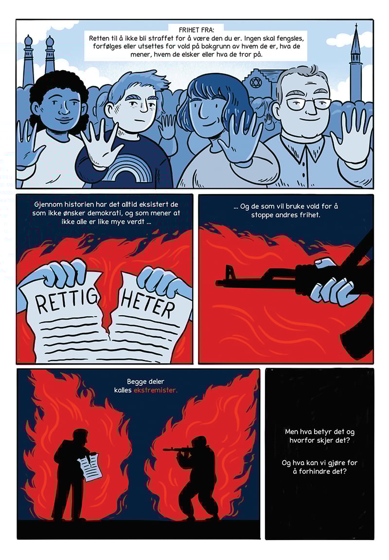I Norge har befolkningen relativ høy tillit til myndighetene og det politiske systemet. Det krever en kontinuerlig innsats å opprettholde det høye tillitsnivået i befolkningen og å vedlikeholde og videreutvikle demokratiet. Det må det demokratiske fellesskapet gjøre sammen. Ekstremistiske holdninger skaper uro og utrygghet mellom folk og bidrar til å rive grunnmuren under det demokratiske fellesskapet. Ekstremistiske aktører og strømninger som undergraver tillit og fellesskap, er derfor reelle trusler mot samfunnet og enkeltmennesker. Etter kommisjonens syn må det tas tydelige grep for å styrke oppslutningen om demokratiet og menneskerettighetene fremover.