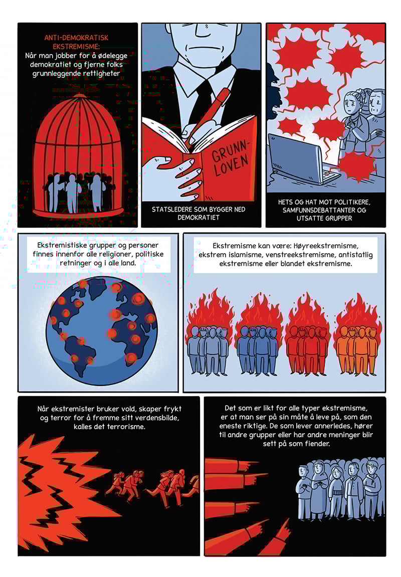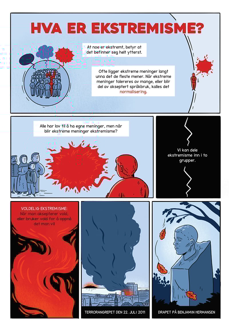 Voldelige ekstreme ideologier har lav oppslutning i Norge. Samtidig har flere terrorangrep blitt gjennomført og avverget. Ekstrem islamisme og høyreekstremisme anses å utgjøre de største terrortruslene mot Norge i dag. Andre former for ekstremisme kan imidlertid utgjøre fremtidige trusler. Ekstremisme krever derfor vedvarende oppmerksomhet og forebygging.