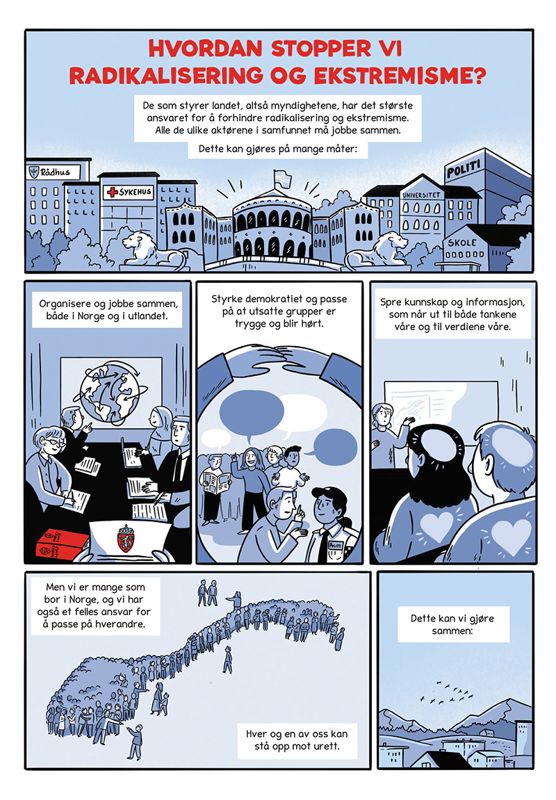 Terror, som er ekstremismens ytterste konsekvens, kan i verste fall polarisere og destabilisere samfunn. Ingen demokratiske samfunn kan sikre seg helt og holdent mot terroranslag og ekstremisme, men historien har vist at det går an å forebygge ekstremisme og dempe effektene av radikalisering. Dette er noe som samfunnet bør prioritere og bruke ressurser på. Forebygging koster lite sammenlignet med de enorme omkostningene det kan ha om ekstreme krefter får gjennomslag.