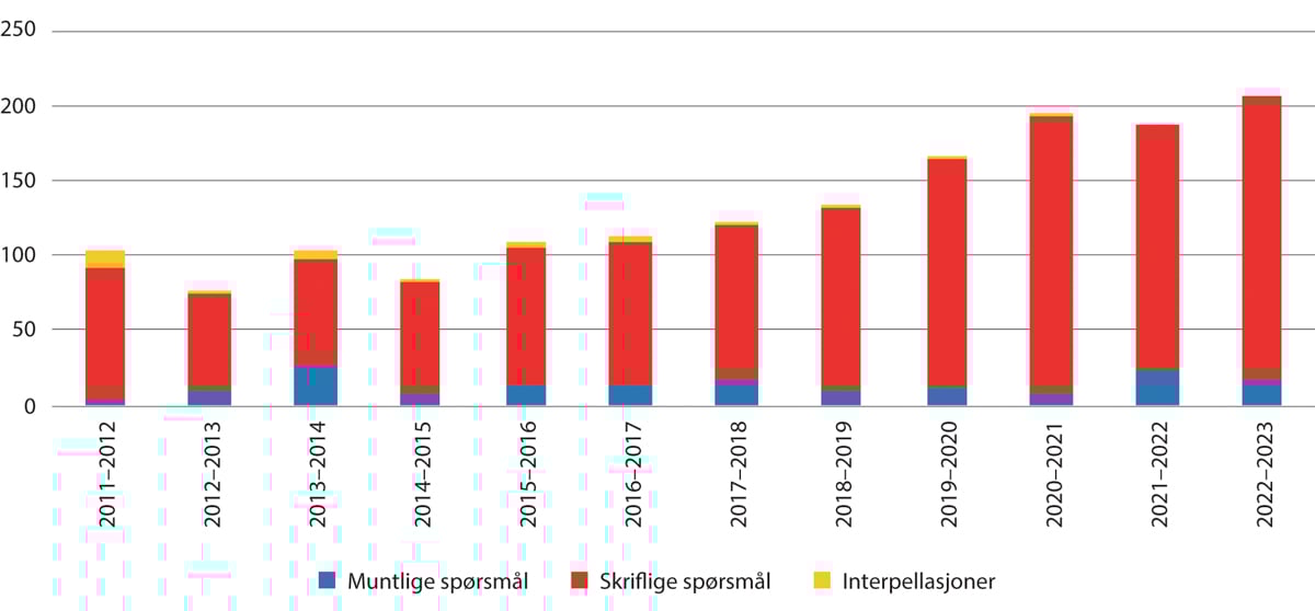 1 Inkluderer registrerte saker i stortingssesjonene 2011/2012–2022/2023.