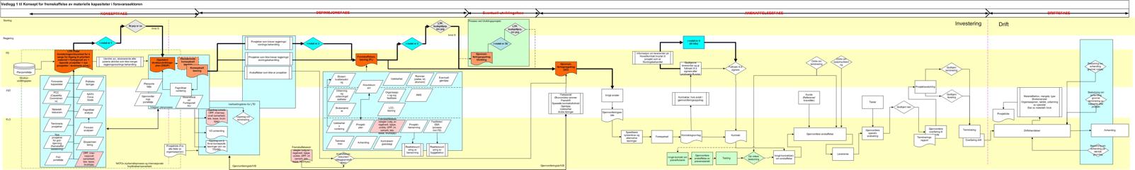 I det nye konseptet er det lagt spesiell vekt på å innpasse investeringsvirksomheten i den ordinære planleggings- og styringsmodellen. Avdelinger og fagmiljøer i Forsvarsdepartementet, Forsvarsstaben, Forsvarets logistikkorganisasjon, Forsvarsbygg og Forsvarets forskningsinstitutt har bidratt betydelig med kompetanse og ressurser i utredningsarbeidet. ”For å få til en vellykket iverksetting av konseptet, er det avgjørende med løpende og like konstruktiv medvirkning fra de samme fagmiljøer”, understreker Søgaard.