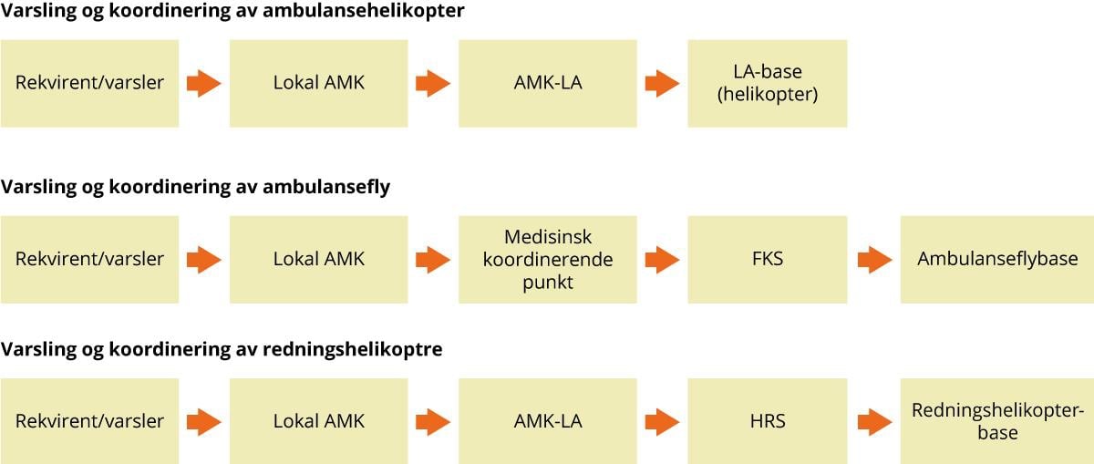 Figur 2.3 Oversikt over varsling og koordinering av luftambulanse- og redningshelikoptre