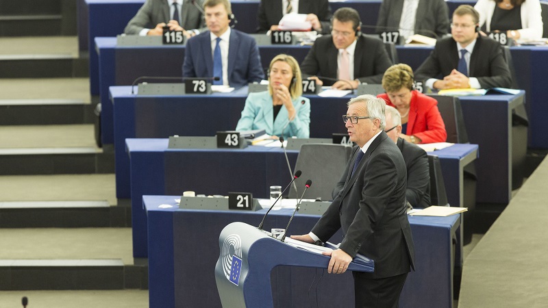 9. september holdt Jean-Claude Juncker, president for Europakommisjonen, sin årlige tale om unionens tilstand. Slike taler er relativt nytt i EU-sammenheng, og ble første gang holdt av daværende kommisjonspresident José Manuel Barroso i 2010. Fra Europaparlamentets side ble det lagt stor vekt på at dette var første gang talen holdes av en kommisjonspresident som er valgt, ikke bare godkjent, av Europaparlamentet. Debatten om tilstanden i unionen ses som en viktig del av parlamentets gransking av Europakommisjonens arbeid. I den nåværende situasjonen viet Juncker, som ventet, hovedtyngden av talen til flyktningkrisen og presentasjonen av Europakommisjonens pakke med løsningsforslag. Hellas og eurosonen fikk større plass i den skriftlige utgaven enn i talen som ble holdt. Juncker kom i tillegg inn på viktigheten av en rettferdig avtale for Storbritannia, konflikten i Ukraina og klimaendringer. Debatten etterpå var også i stor grad preget av flyktningspørsmål. Europakommisjonens forslagspakke til flyktningkrisen ble nærmere presentert og diskutert i en ny debatt etter Junckers tale.