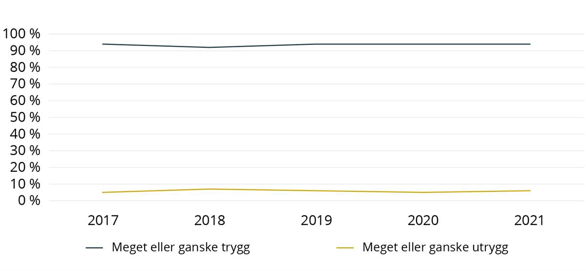 Politidirektoratet utgir årlig en oversikt over anmeldt kriminalitet og politiets straffesaksbehandling, kalt «STRASAK-rapporten». Rapporten for 2021 viser til en nedgang i de fleste anmeldte kriminalitetstyper, både sammenlignet med perioden 2016–2019 (total nedgang på 11,9%) og 2020 (nedgang på 7,2 prosent).134 Dette er i tråd med funnene i politiets årsrapport 2021, som omtalt ovenfor. Av STRASAK-rapporten fremgår det at anmeldte narkotikarelaterte lovbrudd skiller seg ut med en nedgang på omkring en tredel i denne perioden, mens anmeldte seksuallovbrudd skiller seg ut med en økning på 16,5 prosent siste år.135 I rapporten påpekes det imidlertid at covid-19 pandemien trolig har hatt en viss påvirkning på utviklingen.136 I rapporten fremheves det også at utviklingen henger nært sammen med færre registrerte narkotikalovbrudd og vinningslovbrudd. Nedgangen i narkotikaanmeldelsene gjelder særlig de minst alvorlige narkotikalovbruddene, mens nedgangen i anmeldte tyverier og annen vinningskriminalitet antas blant annet å ha sammenheng med mindre bruk av det offentlige rom og redusert reisevirksomhet under pandemien. Rapporten påpeker videre at anmeldte voldslovbrudd er markant redusert de siste to årene.137 Det er registrert nedgang for de fleste typer vold, men rapporten fremhever at det er betydelige mørketall innenfor begge disse kriminalitetsområdene.138 Den samlede utviklingen for grov kroppskrenkelse, kroppsskade og grov kroppsskade som ble anmeldt til politiet, er vesentlig redusert de siste to årene.139 Til sammen ble det registrert i overkant av 2000 slike voldslovbrudd i 2021. Dette er drøyt 21 prosent færre enn gjennomsnittet for den foregående femårsperioden. For anmeldelser av grov kroppsskade, som gjelder vold med betydelig skadefølge og hvor det i mange tilfeller er benyttet et våpen, viser rapporten til at nedgangen er spesielt stor i 2020 og 2021. Til sammen ble det registrert nesten 190 slike anmeldelser i 2021, noe som er drøyt 42 prosent færre enn det årlige gjennomsnittet for 2016–2020.140