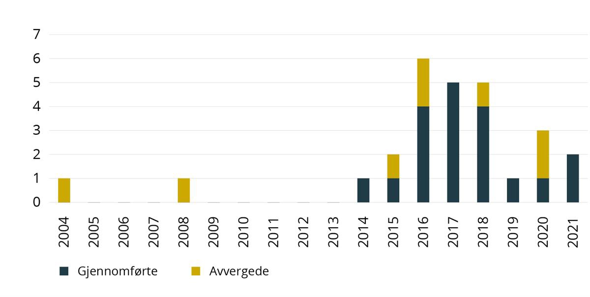 Figur 23. Rapportert bruk av skytevåpen av dansk politi