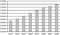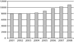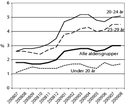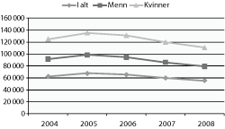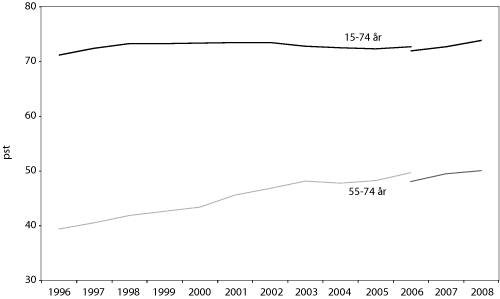 Ikke justert for effekten av at den årlige maksimalytelsen ble økt fra 1,85 G til 1,97 G fra 1. mai 2008