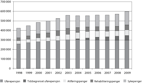 Siden en person kan motta flere ytelser samtidig, vil det forekomme dobbelttelling, dvs. at det reelle antallet er lavere. Videre er det verdt å merke seg at en del har graderte ytelser.