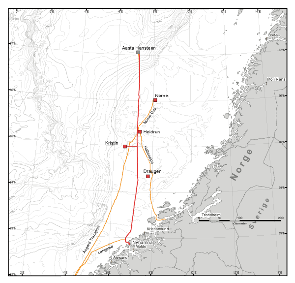 Figur 1.1 Beliggenhet for Aasta Hansteen-feltet og Polarledanleggene