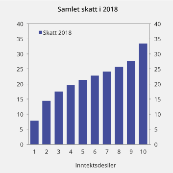Figur 2.23 Samlet skatt i 2018 i prosent av ekvivalent inntekt etter inntektsdesiler