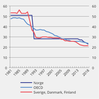 Regjeringens forslag til skatteopplegg for 2019 er i tråd med faglig godt forankrede anbefalinger om hvilke skattelettelser som vil bedre ressursbruken og styrke grunnlaget for økonomisk vekst. Regjeringen foreslår å redusere skattesatsen på alminnelig inntekt for selskap og personer med 1 prosentenhet. Det vil støtte opp under vekstevnen i fastlandsøkonomien ved å stimulere til at investeringer og arbeidstilbud øker over tid. Særlig antas lavere selskapsskattesats å ha positiv virkning. Anslag fra Skatteutvalget tilsier at de gjennomførte endringene i selskapsskatten kan ha en selvfinansieringsgrad over tid på 20–40 pst.