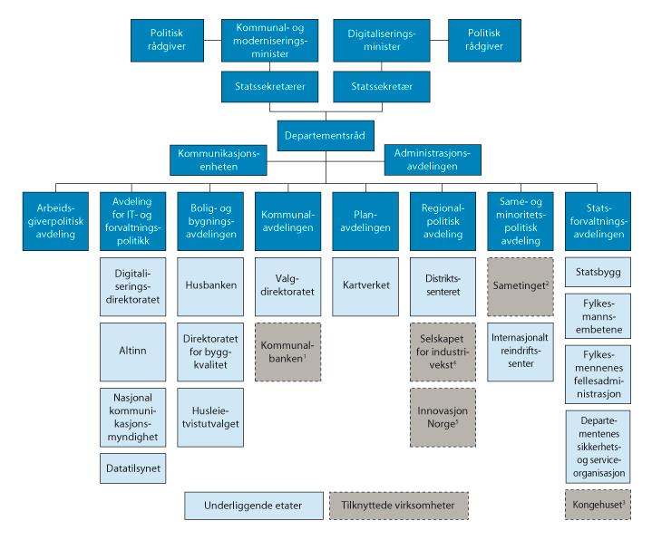 Kommunal- og moderniseringsdepartementets organisering i 2020: