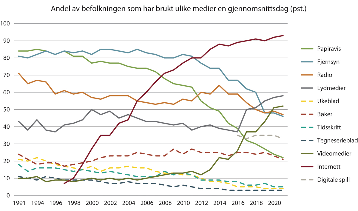 Statistisk sentralbyrå (2022), Norsk mediebarometer 2021.