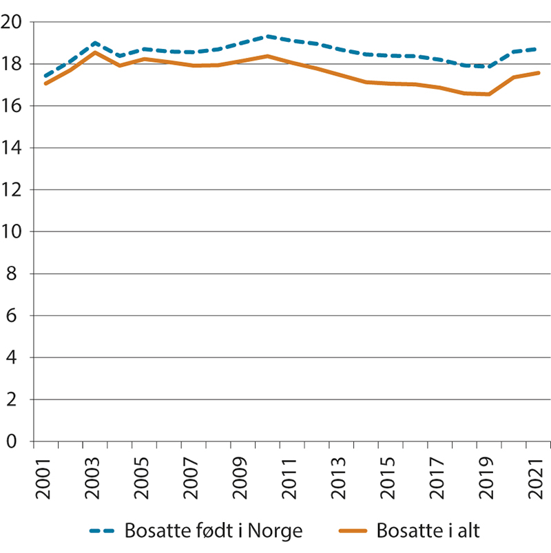 I pst. av befolkningen i alderen 18 til 66 år