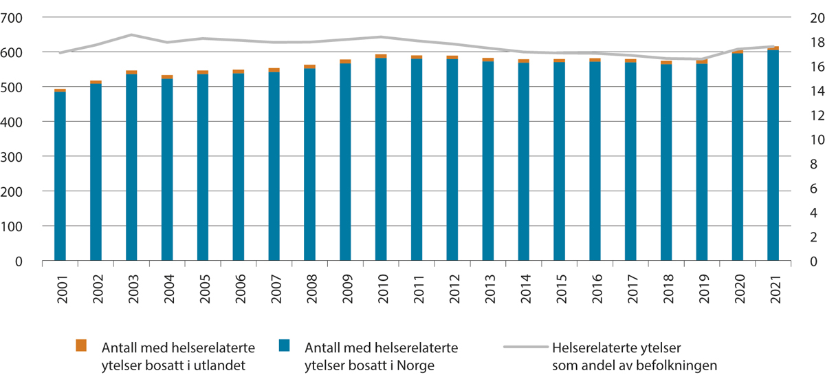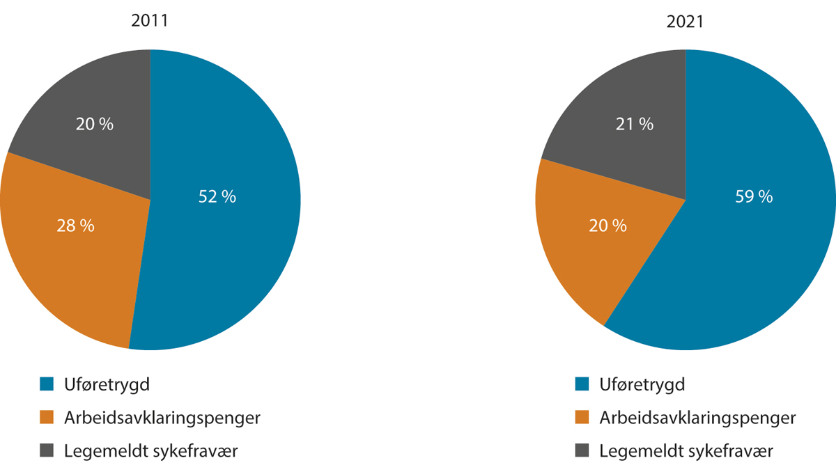 Uførhet | 111 107,5 | 110 092,0 | 118 140,0 | 6,3 | 7,3 |