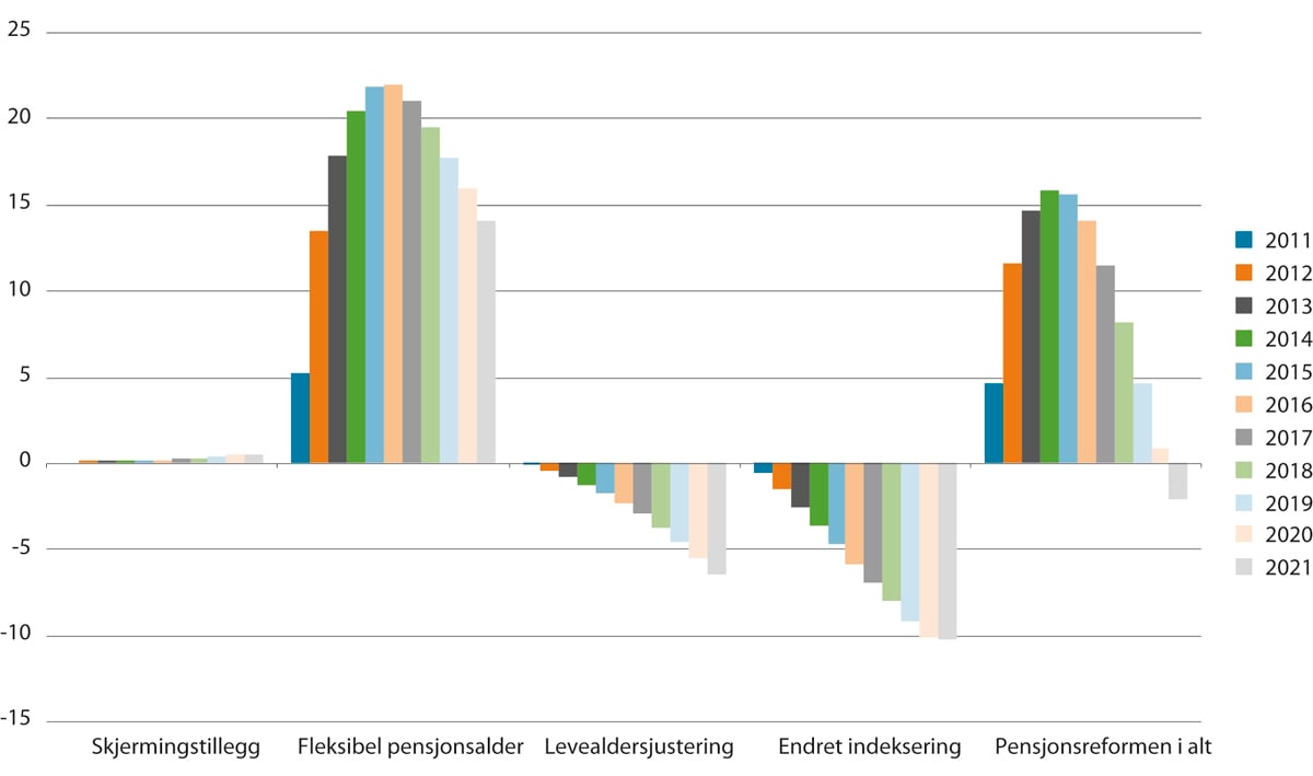 Det er oppdaget flere feil i tidligere beregninger av utgiftsvirkningene av pensjonsreformen som nå er korrigert. Den mest vesentlige feilen gjelder utgiftsbanen for hva utgiftene ville ha blitt uten pensjonsreformen. Den samme feilen slår også inn ved beregning av effekten av fleksibel pensjonsalder (innføring av pensjonsalder 62–75 år).
