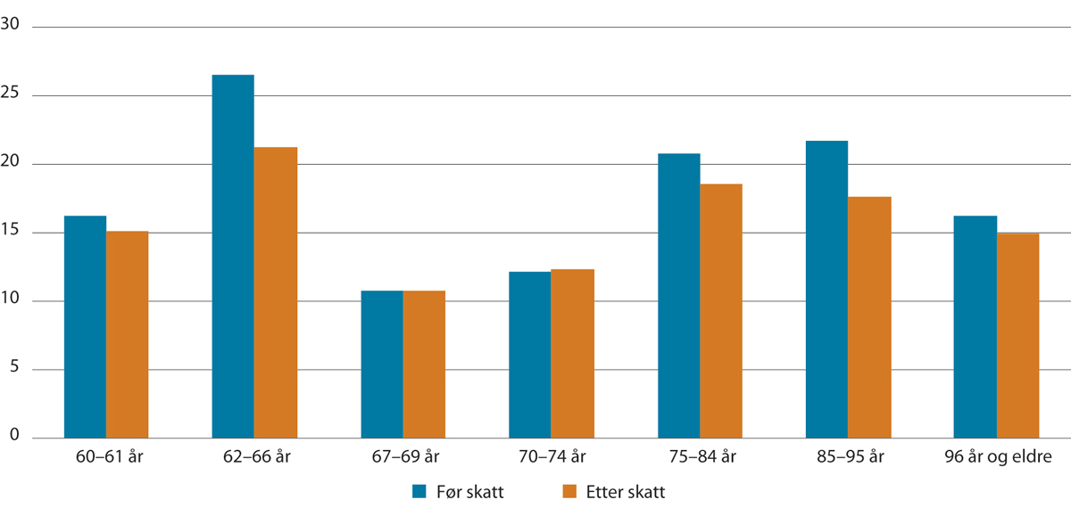 Tallet påvirkes av at relativt mange alderspensjonister og uføretrygdede samtidig er yrkesaktive.