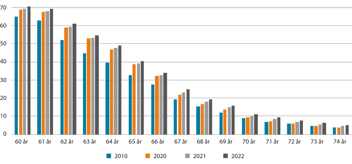Pensjonssystemet skal bidra til en trygg og verdig alderdom for alle, men samtidig være bærekraftig over tid og stimulere til deltakelse i arbeid. Hovedprinsippene i pensjonsreformen, slik som levealdersjusteringen, fleksibelt uttak av pensjon og muligheten til å kombinere pensjon og inntekt fra arbeid ligger fast. Samtidig kan det på enkelte områder være behov for justeringer. Et politisk bredt sammensatt pensjonsutvalg foreslår i NOU 2022:7 en modell for gradvis økning av aldersgrensene i pensjonssystemet for å sikre gode pensjonsnivåer også for framtidige generasjoner. Videre foreslår utvalget at nivået på minsteytelsene prinsipielt bør følge velstandsutviklingen i samfunnet, og foreslår derfor at de skal reguleres med lønnsveksten. Regjeringen vil følge opp utredningen fra Pensjonsutvalget med sikte på et nytt bredt politisk forlik om pensjon og involvere partene i arbeidslivet i dette arbeidet.