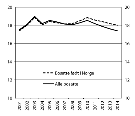 Som personer med innvandrerbakgrunn regnes her både innvandrere og norskfødte med innvandrerbakgrunn.