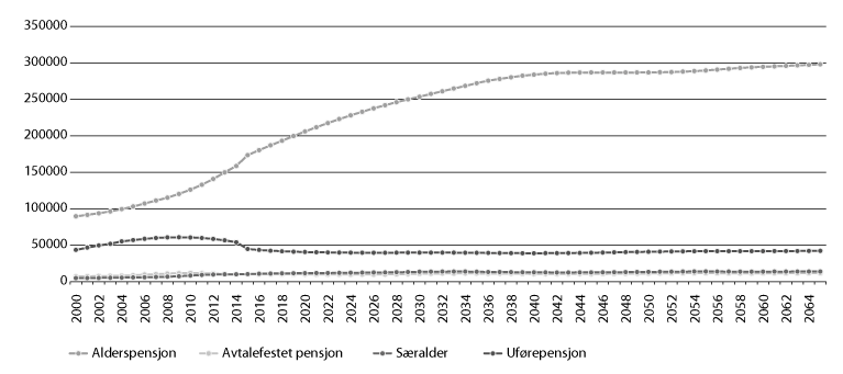 Utgifter på kap. 660 Krigspensjon, kap. 664 Pensjonstrygden for sjømenn, kap. 666 Avtalefestet pensjon (AFP) og kap. 667 Supplerende stønad til personer over 67 år.