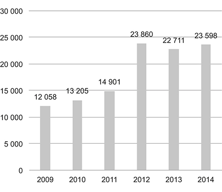 Figur 4.1 Antall nye aksjeselskaper fra 2009–2014
