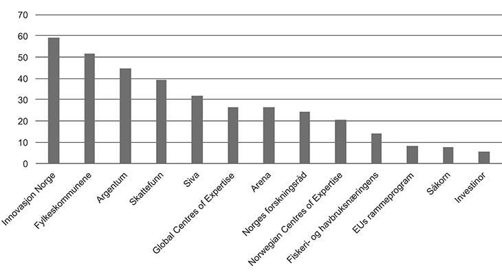 Næringshageprogrammet finansieres kun av Kommunal- og moderniseringsdepartementet.