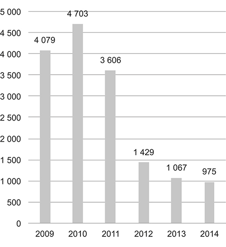 Figur 4.2 Antall nye norske filialer av utenlandske foretak (NUF) fra 2009–2014