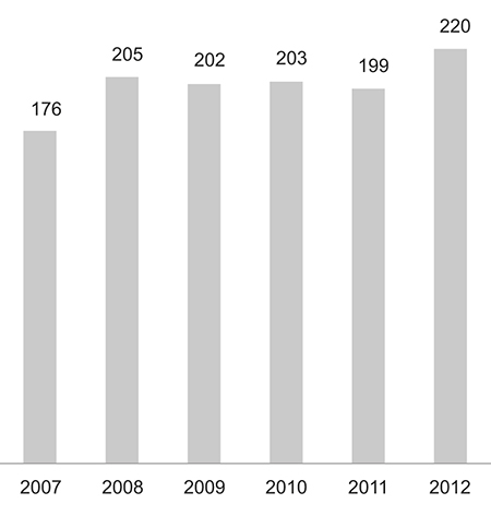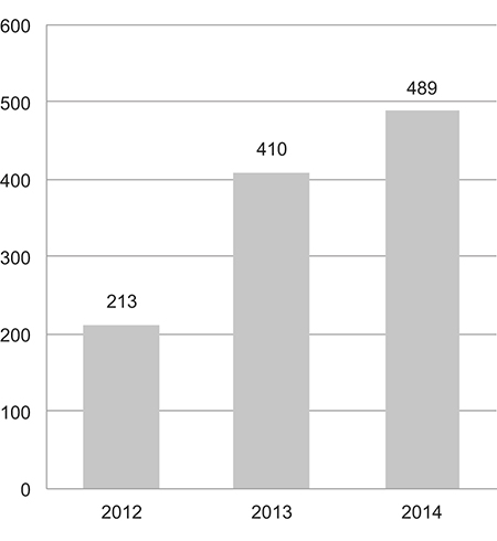 Figur 4.3 Antall digitale tjenester som tilbys i Altinn 2012–2014