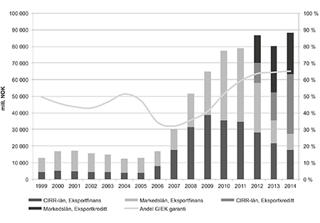 Med hjemmel i fullmakt fra Stortinget tiltrådte daværende Nærings- og handelsdepartementet i juni 2008 en porteføljegarantiavtale mellom Eksportfinans ASA og selskapets aksjonærer. Garantiavtalen innebærer at selskapet på nærmere angitte vilkår sikres mot verdifall i en definert portefølje av verdipapirer innenfor en totalramme på 5 mrd. kroner. Avtalen bidrar dermed til å beskytte egenkapitalen i selskapet. Staten ved Nærings- og fiskeridepartementet sitt samlede ansvar er begrenset oppad til 750 mill. kroner.