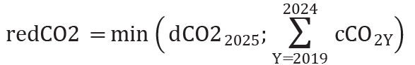 redCO2 er reduksjonen av utslippsgjeld for rapporteringsperioden for år 2025 som fastsatt i samsvar med nr. 5.4,