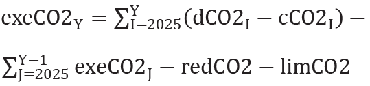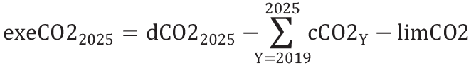 For hver produsent og hver rapporteringsperiode fra og med 2025 skal verdien av CO2-utslippsoverskridelsen (exeCO2Y) beregnes på følgende måte dersom verdien er positiv: