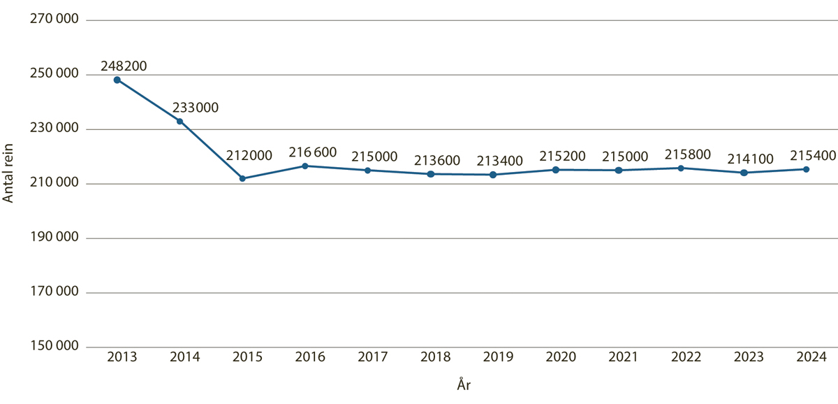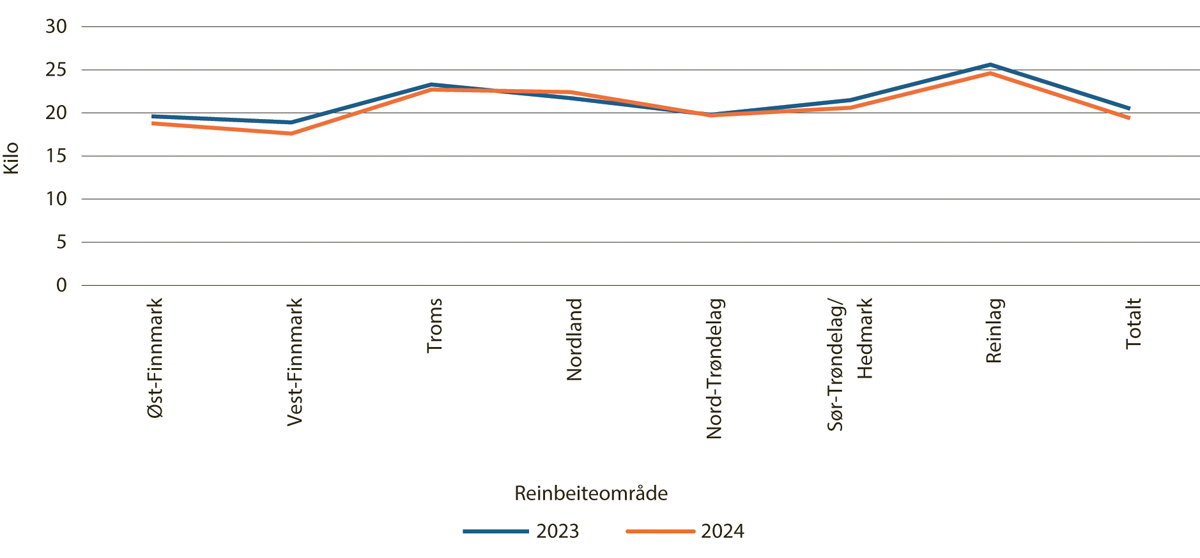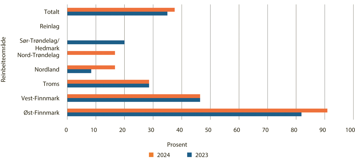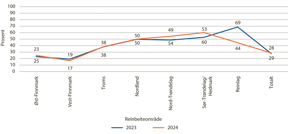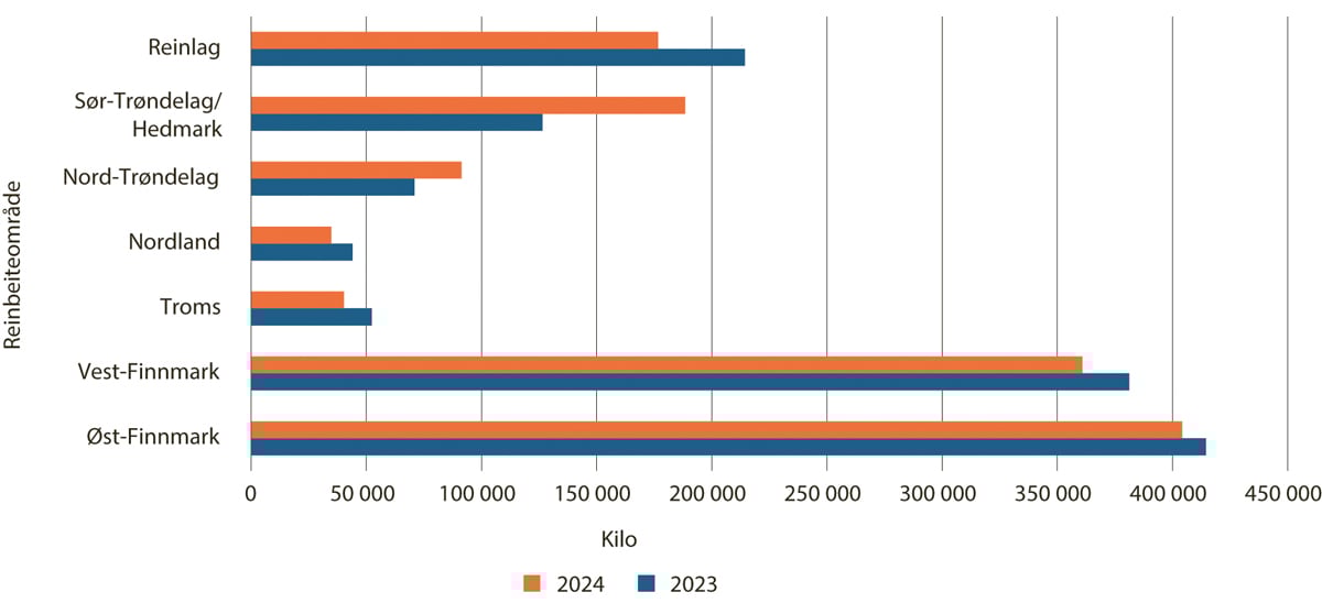 Kilde: Ressursregnskapet for reindriftsnæringen. For reindriftsåret 1. april 2023 – 31. mars 2024