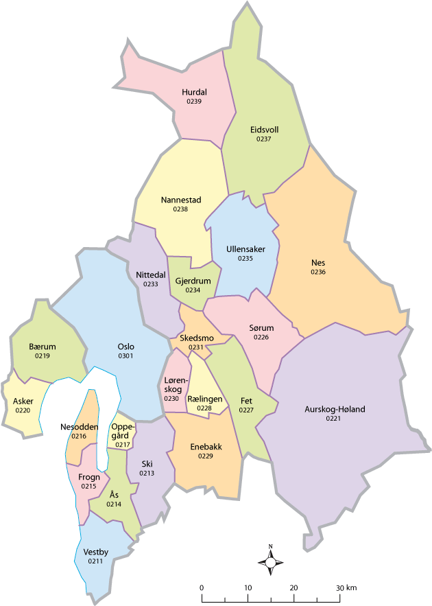 Figur 5.2 Kart over kommunene i Oslo og Akershus