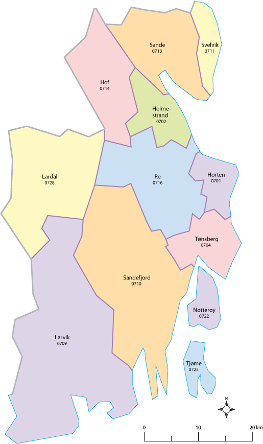Hof og Holmestrand er allerede vedtatt slått sammen fra 1. januar 2018 gjennom kongelig resolusjon. I denne proposisjonen foreslås det at Sande slås sammen med den nye kommunen fra 1. januar 2020.