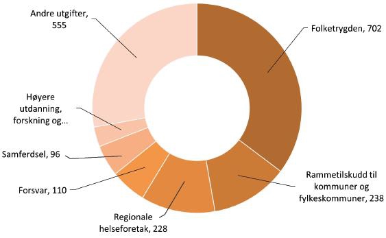 Figur 2.1 Statsbudsjettets utgifter i 2025. Mrd. kroner.
