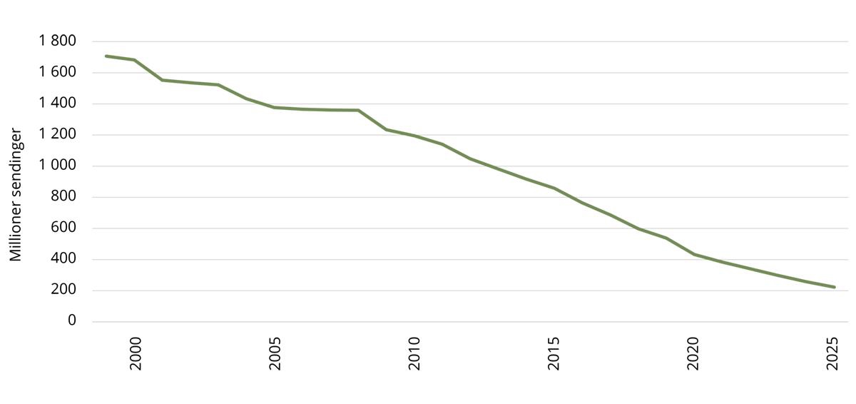 Utviklingen og utfordringsbildet knyttet til de ulike posttjenestene er imidlertid svært ulik. Brevmengden nådde en topp i 1999. Det var primært masseutsendinger fra det offentlige, banker og annen forretningsvirksomhet som hadde bidratt til veksten. I 2000 var bruken av ulike kanaler for elektronisk kommunikasjon blitt så omfattende at brevmengden for første gang gikk ned. Siden den gang har digitale alternativer, som e-post og digitale postkasser, blitt stadig mer brukt. Tallet på fysiske brev har gått ned med mer enn 80 prosent siden tusenårsskiftet.