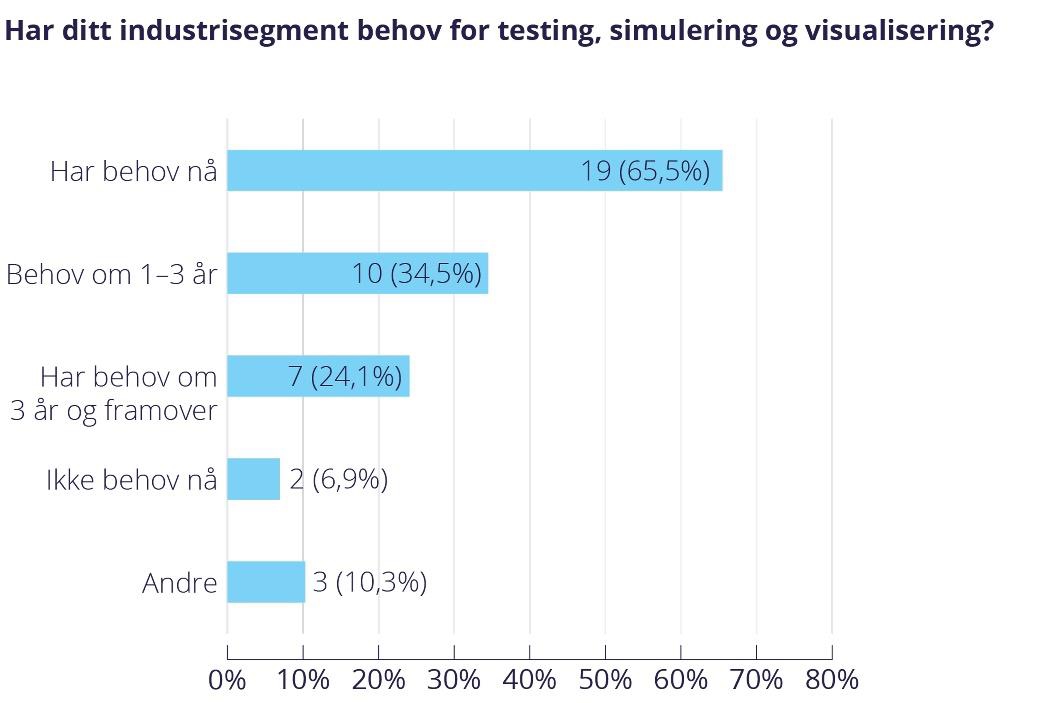 Behovet for testing synes tydelig, men hva slags testing er lite konkretisert. Industribedrifter opplever at mer komplekse løsninger og strengere krav, gir økt behov for testing og demonstrasjon i utviklingsprosessene. Testing og utvikling er krevende og noe som flere bransjer sliter med å gjennomføre, både på grunn av økonomiske begrensninger og kompetanse.