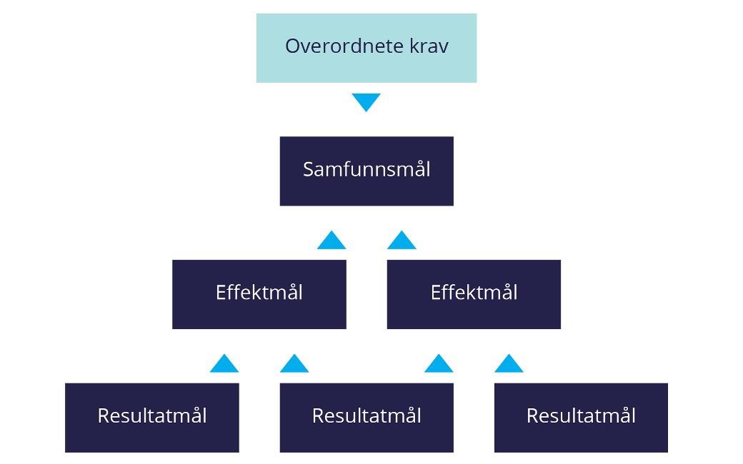 Figur 6.1. Et senter trenger mål på ulike nivåer og der det er flere mål på samme nivå bør de prioriteres innbyrdes (Finansdepartementet, 2010).