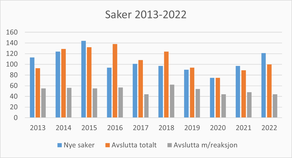 Oversikt over talet på sakar i 2022 |