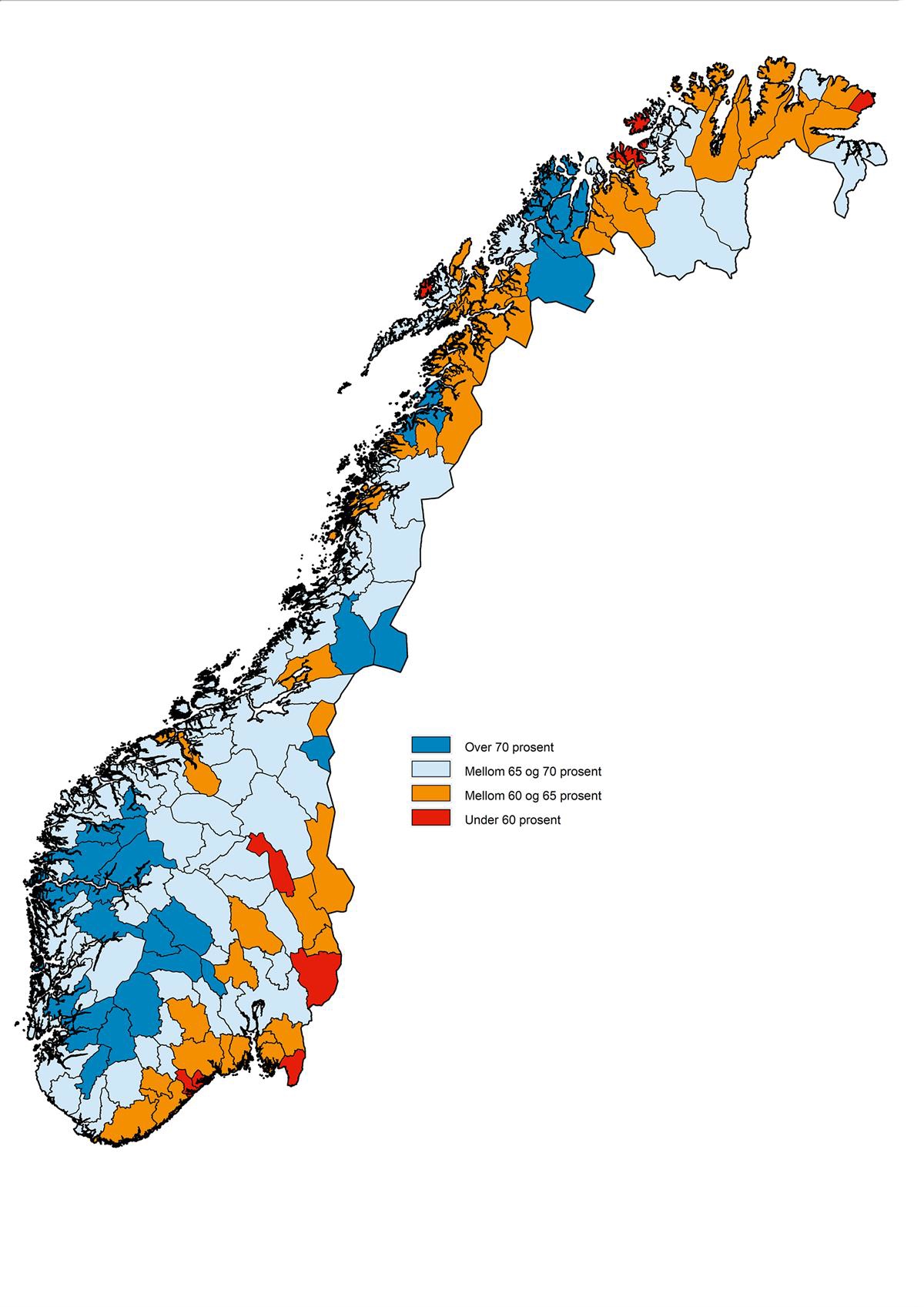 Vestfold og Telemark | 65,4 | 63,0 | 62,0 | 65,0 | 69,2 | 63,6 | |