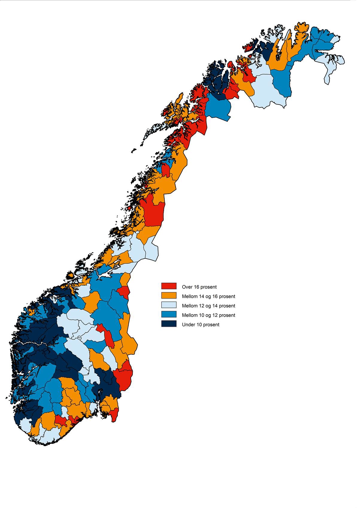 Troms og Finnmark | 8,2 | 12,1 | 13,5 | 15,3 | 11,8 | ||