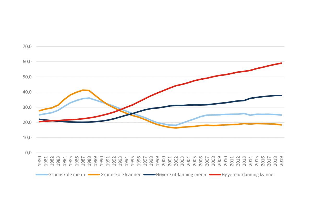 Utdanning har stor betydning for sosioøkonomisk mobilitet og menneskers mulighet til å få et bedre liv. Man finner dermed en klar statistisk sammenheng mellom utdanningsnivå og deltakelse i arbeidsmarkedet, i tillegg til at utdanning påvirker en rekke levekårsvariabler som helsetilstand, forventet levealder og inntekt (jf. kapittel 5.4 og 5.5). De som ikke har tilegnet seg en viss grad av formell kompetanse, står i større fare for å ende opp med en svak tilknytning til arbeidsmarkedet eller i arbeidsledighet. I OECD-rapporten «Investing in Youth Norway» trekkes lavt utdanningsnivå fram som den største risikofaktoren for å havne utenfor arbeid og utdanning for unge i Norge (OECD, 2018).