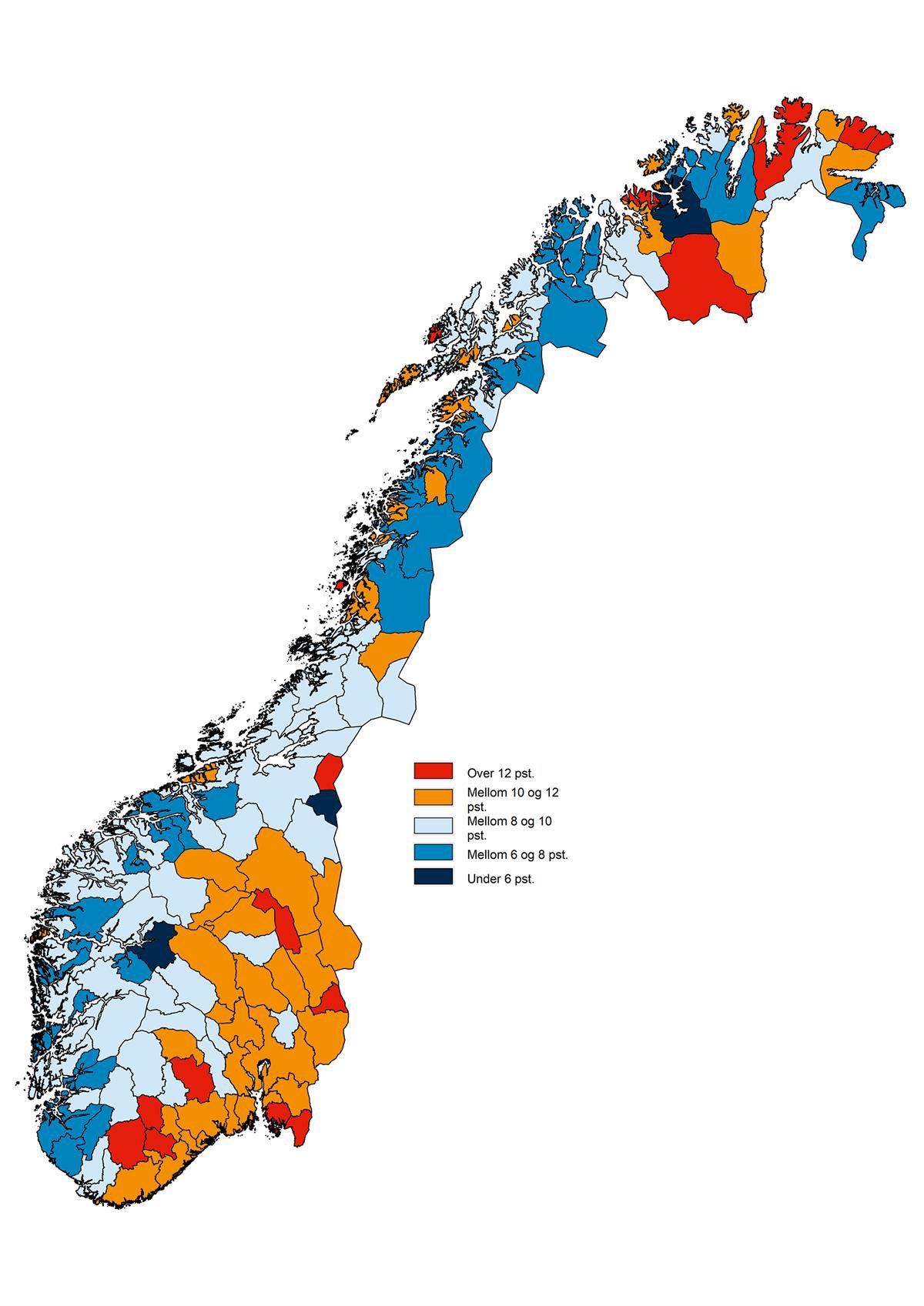 Hele landet | 12,1 | 9,9 | 9,4 | 8,5 | 8,9 | 9,5 | 9,8 |