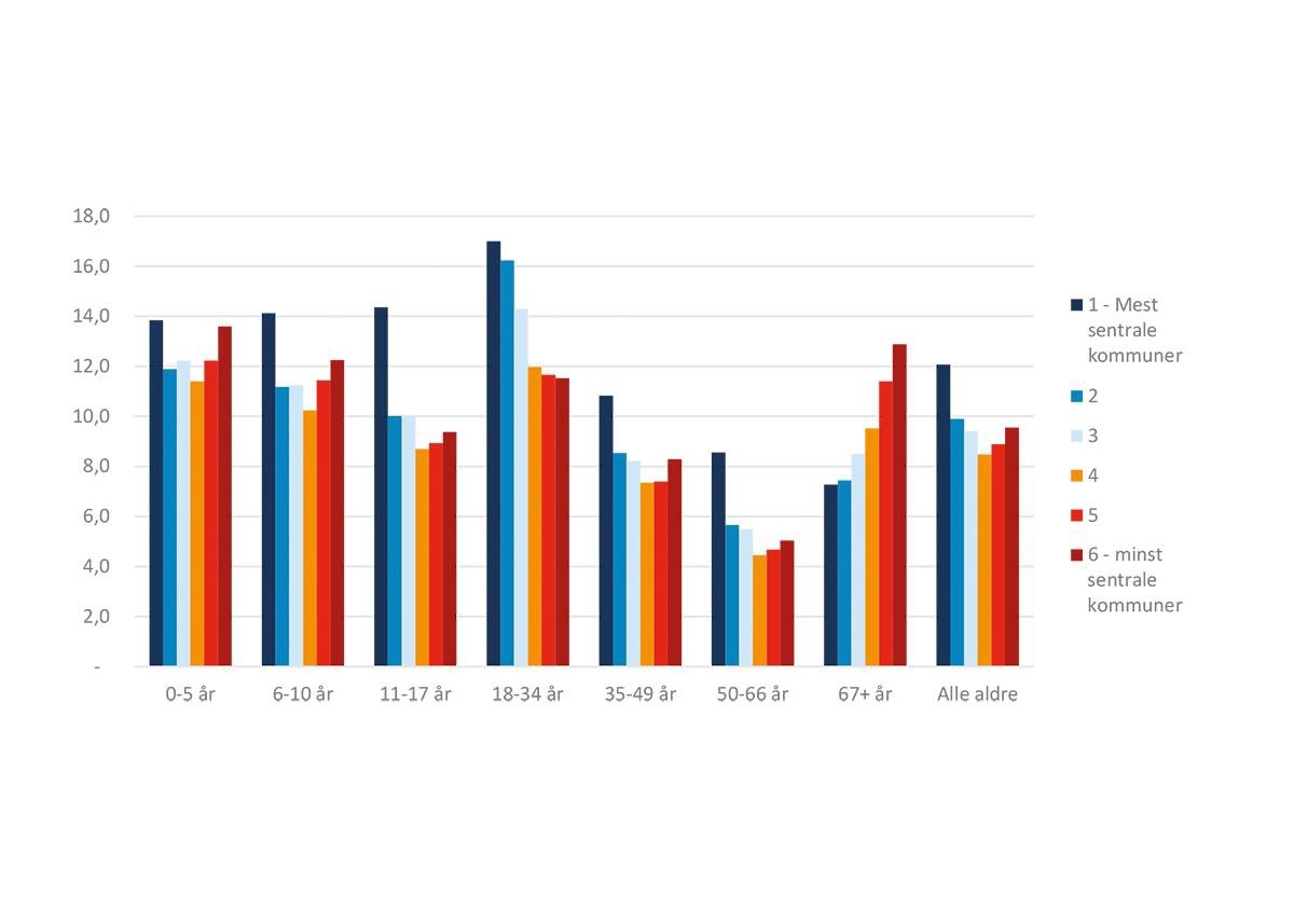 Ingen systematiske forskjeller etter sentralitet på landsbasis…