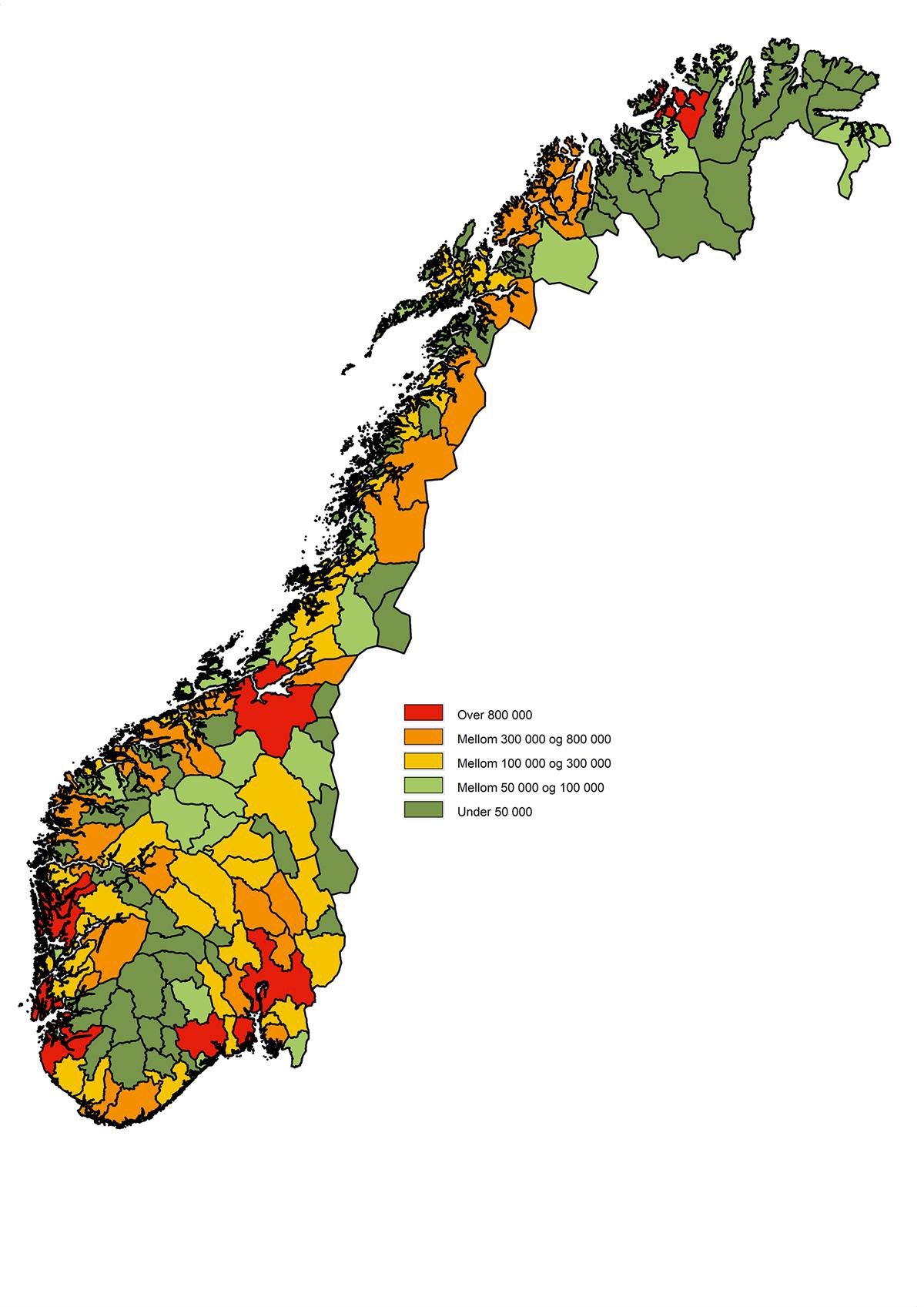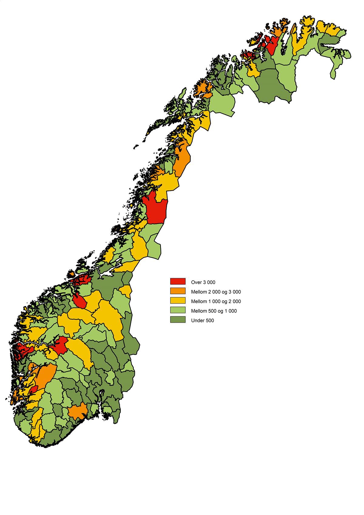 Boks 7.4 Klimaregnskap for kommuner og fylkerPå oppdrag fra Klima- og miljødepartementet har Miljødirektoratet – i samarbeid med blant annet KS – utviklet et klimaregnskap for kommuner og fylker. SSB er en viktig dataleverandør og gjennomfører utslippsberegninger for en del av utslippskildene, og har også publisert fylkestall underveis i utviklingen av regnskapet. Det er beregnet utslipp av klimagassene karbondioksid (CO2), metan (CH4) og lystgass (N2O). Mens nasjonale tall inkluderer fluorgasser (HFK, PFK og SF6), er disse ikke inkludert i regnskapet for kommuner og fylker. Utslippstallene vises med enheten CO2-ekvivalenter (i tonn), som er en måleenhet som brukes for å kunne sammenligne oppvarmingseffekten ulike klimagasser har på atmosfæren. Klimagassregnskapet er fordelt på 35 utslippskilder og følger den inndelingen som blir brukt i det nasjonale utslippsregnskapet, selv om nivået er mer aggregert. For eksempel er utslipp fra industri og olje- og gass slått sammen. En del utslipp som inngår i de nasjonale tallene, er ikke inkludert i kommunetallene, blant annet utslipp som ikke skjer innenfor kommunegrenser. Eksempler kan være offshore-virksomhet i olje- og gassnæringen, sjøfart utenfor kommunegrensene og cruisefasen av nasjonal og internasjonal luftfart. Andre utslippskilder er ikke tatt med fordi det mangler god nok informasjon til å kunne plassere utslippene geografisk (for eksempel bruk av produkter med nevnte fluorgasser). Det benyttes datakilder som i størst mulig grad viser utviklingen lokalt. Data som finnes på nasjonalt nivå, er ikke alltid geografisk fordelt, og ofte vil det derfor være valgt andre datakilder enn i det nasjonale regnskapet. Dette vurderes å gi et bedre bilde av lokale forhold, men innebærer at det ikke alltid er samsvar mellom summen av utslippene i alle kommuner og den nasjonale utslippstotalen. Regnskapet omfatter det som skjer direkte innenfor kommunens grenser. Indirekte utslipp som kommunen/innbyggere er årsak til gjennom sitt forbruk, er ikke inkludert. Et eksempel er avfallsbehandling. Disse utslippene tilfaller kommunene der anleggene er lokalisert, ikke befolkningen eller bedriftene som genererer avfallet. Det samme gjelder bruk av elektrisitet, der eventuelle utslipp tilfaller kommunene der produksjonen er lokalisert, ikke kommunen der energivarene forbrukes. Mer utfyllende informasjon er tilgjengelig på www.miljodirektoratet.no og i rapporten «Klimaregnskap for kommuner og fylker – dokumentasjon av metode (M989 2021) » |