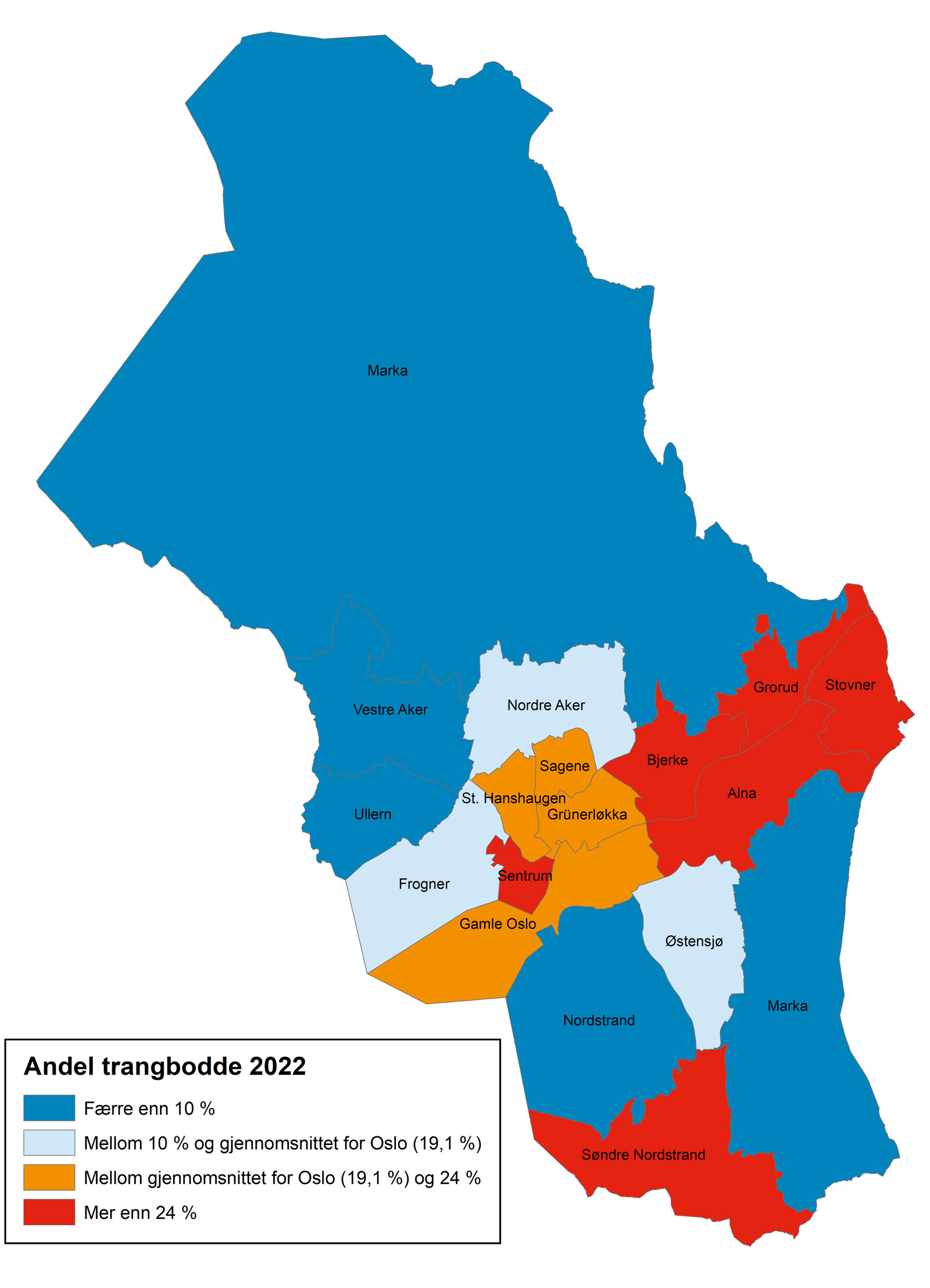 Figur 6.11 Andel personer som bor trangbodd etter bydel i Oslo. 2022.