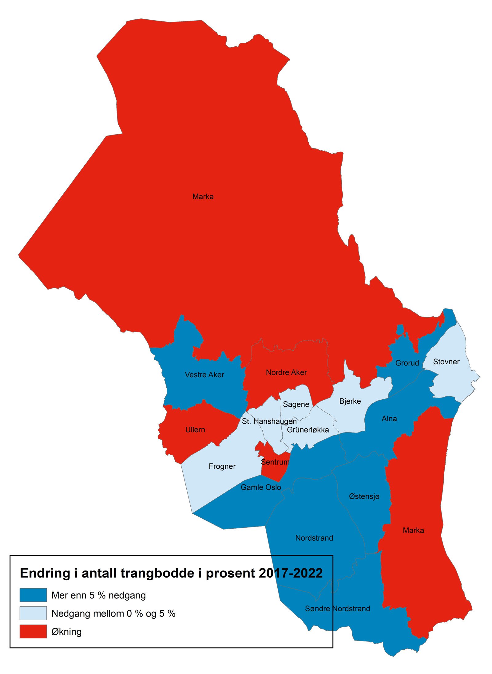 Figur 6.11 Endring i antall personer som bor trangbodd. 2017-2022