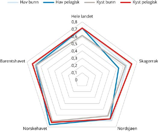 Figur 7.1 Naturindeks for økosystemer i hav etter havområder. 2014.