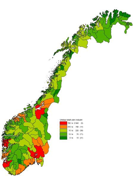 - Industrien gir store utslipp fra fylkene Telemark, Hordaland og Nordland.