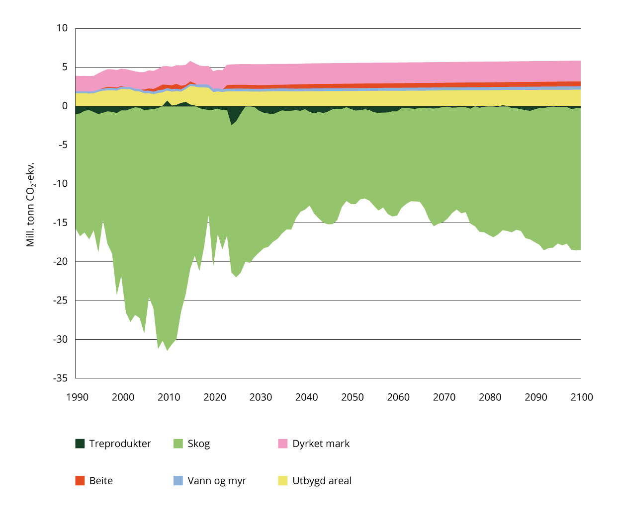 Figur 4.5 Utslipp og opptak fra skog- og arealbrukssektoren.